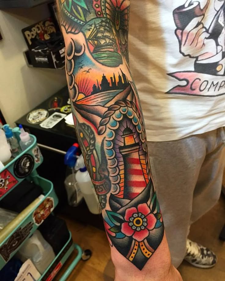 Il Фаро является еще одной татуировкой старой школы, легато палементе аль mondo del mare и della navigazione. In passato non эра così popolare.