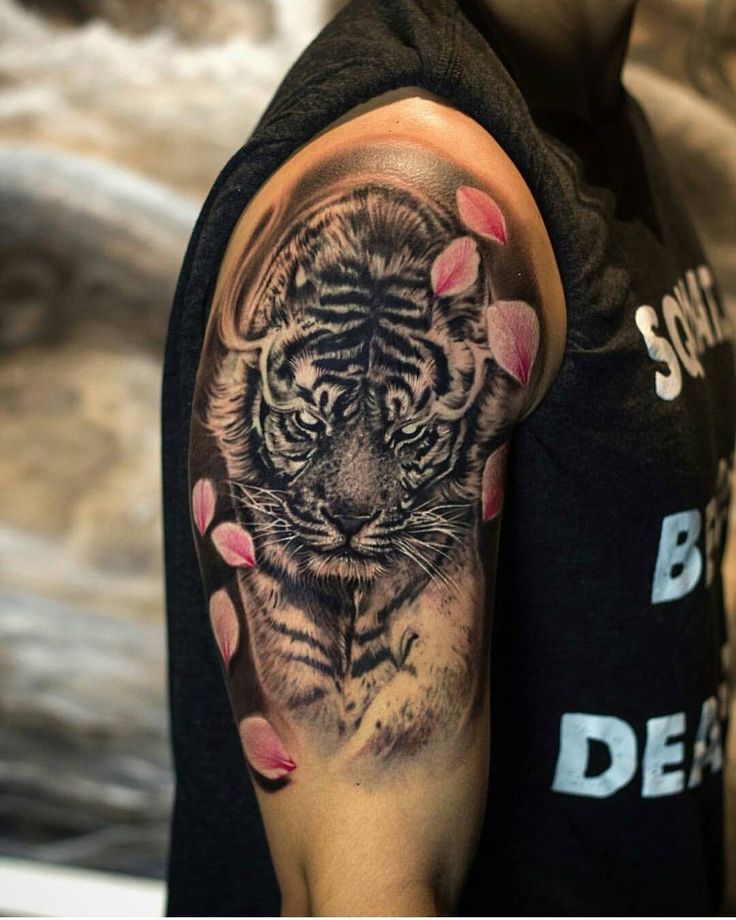 Некоторые рисунки татуировки тигра с цветком тоже выглядят великолепно!
