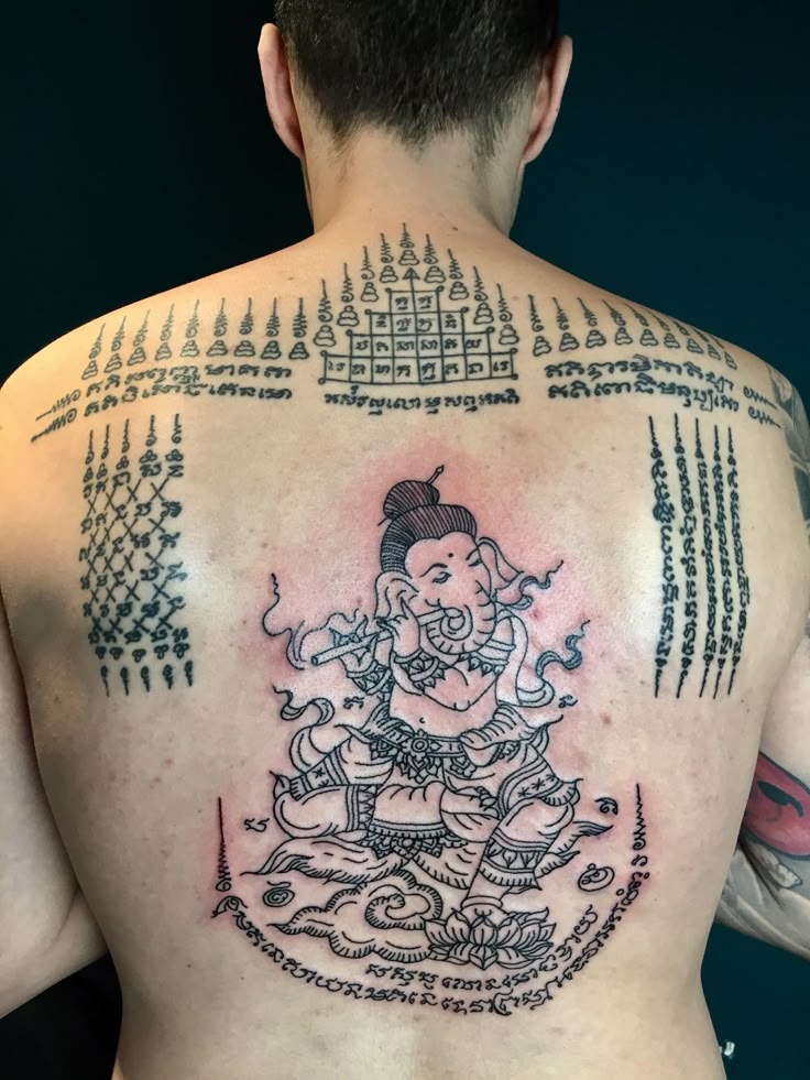 Короче говоря, татуировка Сак Янт — это традиционная тайская татуировка, которая возникла в Юго-Восточной Азии, в частности, в Таиланде, Вьетнаме и Лаосе. Традиционно это делали буддийские монахи, которые наносили татуировку рукой во время пения молитв.![]()