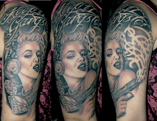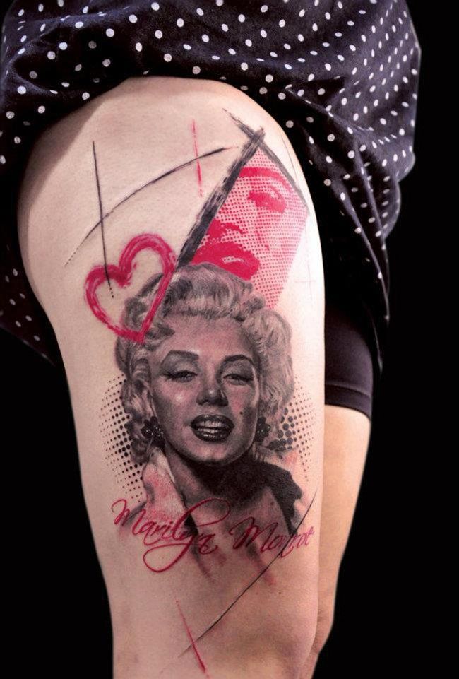Еще одно значение тату – это увлечение кинематографом и эпохой 50-х. Среди современной молодежи есть немало поклонников Мэрилин Монро, которые с трепетом и уважением относятся к ее образу, и для которых она по сей день является идеалом. За основу берутся культовые фотографии актрисы, которые сногсшибательно выглядят в качестве нательного рисунка.