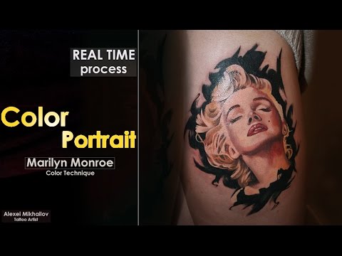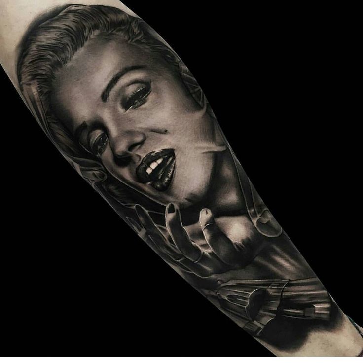 Мэрилин Монро тату эффектно смотрятся в стиле реализм, где эскиз порой сложно отличить от настоящего фото. Это достигается путем детализации и четкой прорисовки контуров. Насыщенное яркое изображение становится настоящим произведением искусства, и одинаково подходит мужчинам и женщинам.