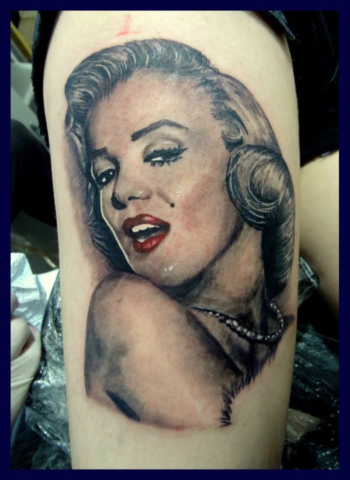 Место нанесения зависит от масштаба татуировки: либо это портретное изображение, либо фото культовой блондинки в полный рост. Для больших рисунков больше подойдет спина, рука, а для маленьких – лопатка, предплечье, бедро.