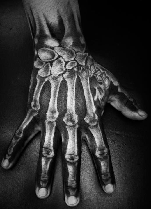Несмотря на кажущуюся простоту рисунка, такие татуировки очень сложны в исполнении, особенно если тату повторяет скелет кисти руки, ноги или хребта.