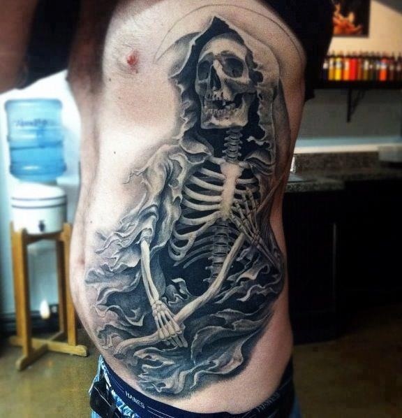 Изображени смерть с косой варьируются от среднего до большого размера, поэтому лучше размещать их на спине, боку, бедру, руку, плече.