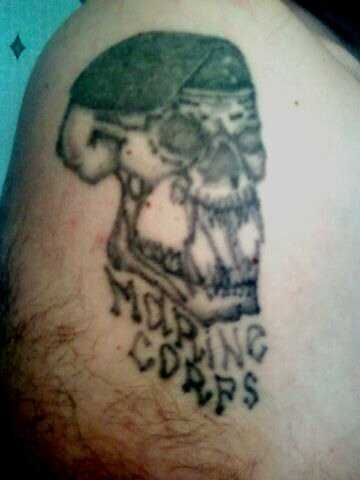 У морских пехотинцев обязательным символом является купол парашюта. На руке изображают череп в бандане, а если нужно более сложное тату, то рисуют якорь на фоне глобуса или же дельфина, выпрыгивающего из волн. Самой простой татуировкой считается ленточка, где написано «Морская Пехота».