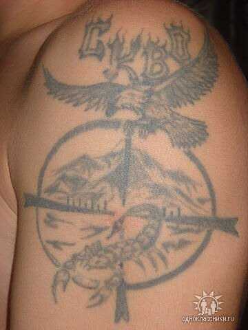 Originally posted by twower at Армейские татуировки. Часть третьяТрадиционный элемент многих тату – скорпион, символизирующий пребывание в горячей точке. Сомкнутые клешни означают, что человек был в зоне боевых действий, но не воевал, раскрытые – принимал участие в боевых действиях. Попадаются еще черепа – был рядом со смертью, берет – войска спецназначения, огонь – горячие точки. Горы обычно символизируют Кавказ. Но не обязательно татуировка делается со смыслом, иногда просто для красоты 🙂1.
