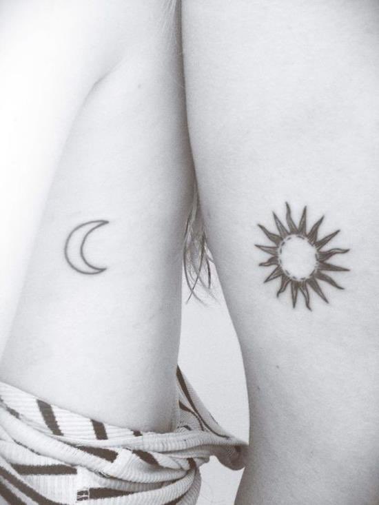 Татуировки Солнца и Луны также могут означать любовь и брак, поэтому создание такого рисунка для пары может быть отличной идеей.