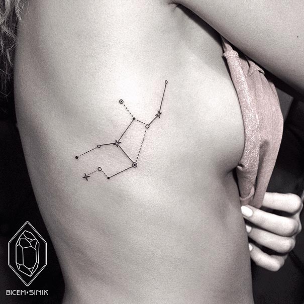 Татуировка созвездия Близнецов — первая идея в нашем списке лучших идей татуировки Близнецов.