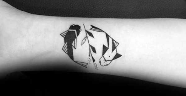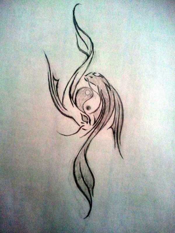 Татуировка пользуется большим успехом у людей, которые обожают все мистическое и тайное. Знак в виде двух рыб, которые плывут одна к другой, символизирует Инь и Янь, они создают гармонию во всем. Смысл тату в том же – создавать условия для душевного спокойствия.