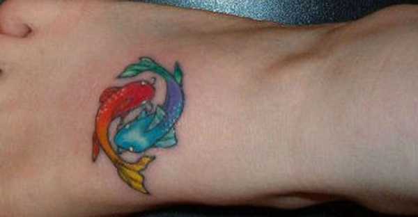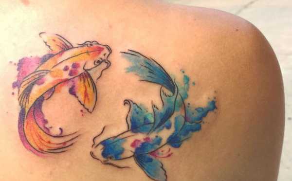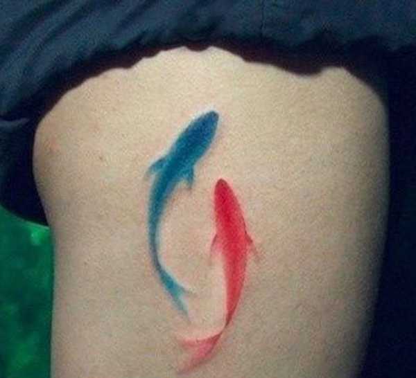 Тату Рыб лучше делать яркой и впечатляющей, поскольку это поможет взять себя в руки и приступить к новым открытиям. Черного и других оттенков лучше избегать.