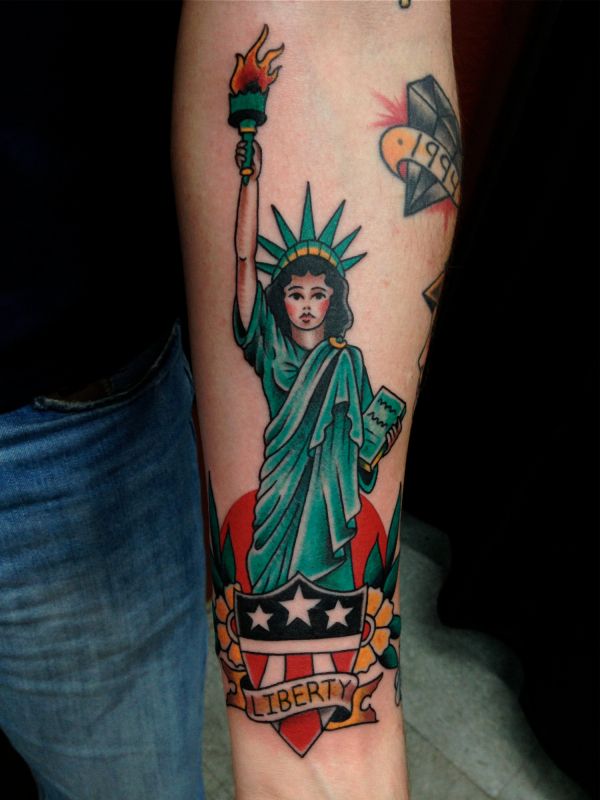 При этом, далеко не все они имеют хоть какое-то отношение к США. Само изваяние возведено в Нью-Йорке, на о. Свободы. Это всемирный символ идеалов демократического общества, победивших в стране. В мире есть немало людей, разделяющих эти идеи и ценности. Они приходят к тату мастерам, чтобы заказать себе такой эскиз.на