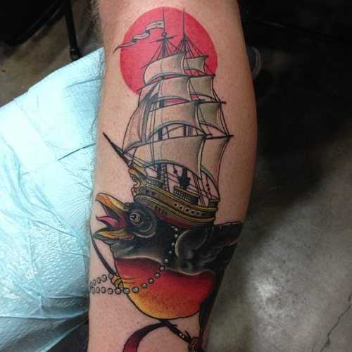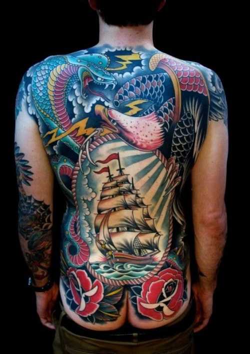 Пожалуй, это стало причиной того, что особой популярностью пользовались рисунки, используемые еще в 19 веке. Так, особой славу сыскали себе различные якоря и корабли. Несомненно, на это повлияли старые моряки. От этих тату стиль перерос в нью и олд скул.