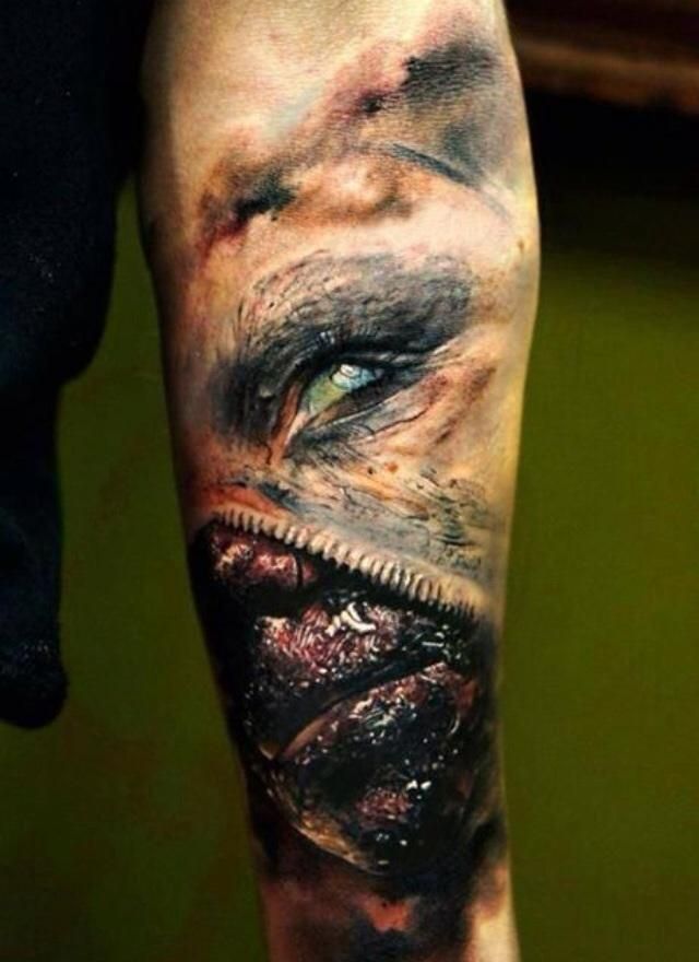Страшное лицо человека – тату на плече у парня, добавлено: Иван Вишневский