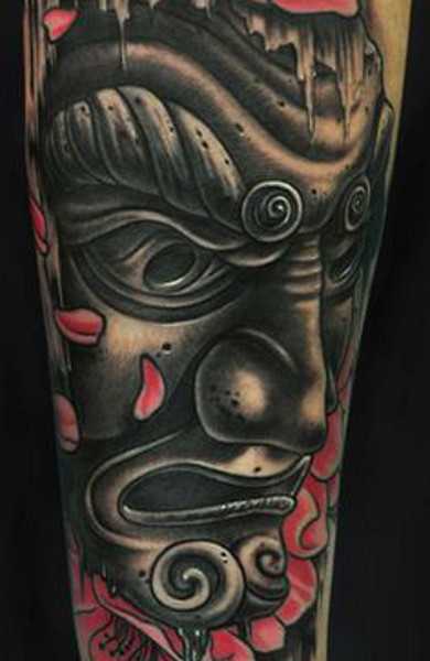 - маска самурая. Если вам близка восточная тематика – маска самурая станет отличным выбором для вас. Значение тату маска самурая – это воплощение мужества, несгибаемой воли, стойкого духа.
