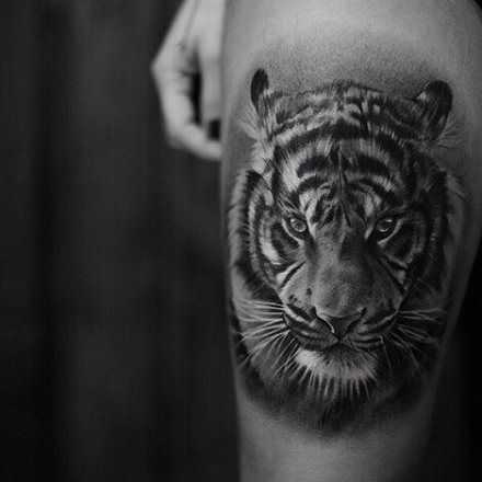 Тигр – величественное и гордое животное, поэтому он требует внушительного размера тату.
