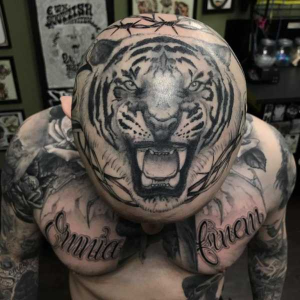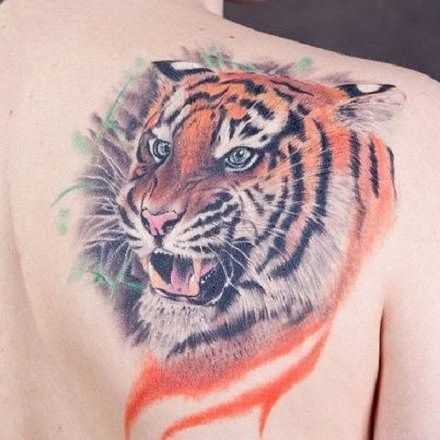 Если Вы не готовы к таким кардинальным переменам во внешности, можно сделать тату меньшего размера на плече, лопатках, ногах и т.д. Но смотреться оно будет не так грандиозно. Если Вы хотите среднее по размерам тату, но при этом что бы оно вызывало должный эффект – сделайте тату головы тигра, а не в полный рост. Глубокий взгляд и оскал выразительно скажут о Вашей стойкости и боевых навыках.