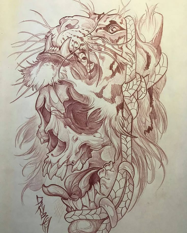 Рисунок черепа тигра – Etsy.de