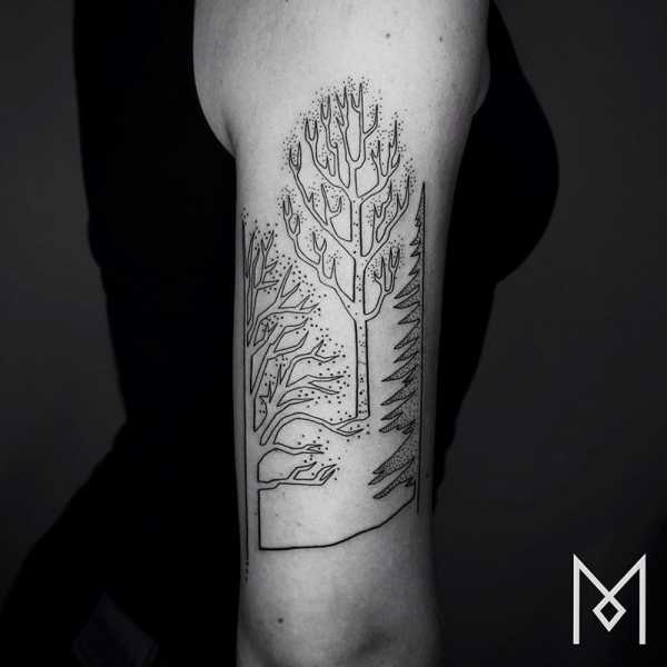 ΠΠΎΠ»ΠΎΠ΄Π°Ρ ΠΆΠ΅Π½ΡΠΈΠ½Π°-ΡΠ°ΡΡΠΈΡΠΎΠ²ΡΠΈΠΊ ΠΈΠ· Π’ΡΡΡΠΈΠΈ ΠΠΈΠΊΠ΅ΠΌ Π‘ΠΈΠ½ΠΈΠΊ Π² ΡΠ²ΠΎΠΈΡ ΡΠ°Π±ΠΎΡΠ°Ρ ΠΈΡΠΏΠΎΠ»ΡΠ·ΡΠ΅Ρ Π΄Π΅ΠΊΠΎΡΠ°ΡΠΈΠ²Π½ΡΠ΅ ΠΌΠΎΠ½ΠΎΡ ΡΠΎΠΌΠ½ΡΠ΅ Π»ΠΈΠ½ΠΈΠΈ Π΄Π»Ρ ΡΠΎΠ·Π΄Π°Π½ΠΈΡ Π³Π΅ΠΎΠΌΠ΅ΡΡΠΈΡΠ΅ΡΠΊΠΈΡ ΠΆΠΈΠ²ΠΎΡΠ½ΡΡ ΠΈ Π΄ΡΡΠ³ΠΈΡ ΡΠΎΡΠΌ ΠΌΠΈΠ½ΠΈΠΌΠ°Π»ΠΈΠ·ΠΌΠ°, Π° Π΄Π»Ρ Π·Π°ΡΠ΅ΠΌΠ½Π΅Π½ΠΈΡ ΠΎΡΠ΄Π΅Π»ΡΠ½ΡΡ ΡΠ°ΡΡΠ΅ΠΉ ΡΠ°ΡΡΠΈΡΠΎΠ²ΠΊΠΈ ΠΈΠ½ΠΎΠ³Π΄Π° ΠΈΡΠΏΠΎΠ»ΡΠ·ΡΠ΅Ρ Π΅Π»Π΅ Π·Π°ΠΌΠ΅ΡΠ½ΡΠ΅ ΡΠΎΡΠΊΠΈ, ΠΏΡΠΈΠ΄Π°ΡΡΠΈΠ΅ Π³Π»ΡΠ±ΠΈΠ½Ρ Π΅Π΅ ΡΠ°Π±ΠΎΡΠ°ΠΌ. ΠΡΠΎΡ ΡΡΠΈΠ»Ρ ΡΠ°ΡΡΠΈΡΠΎΠ²ΠΊΠΈ Π½Π°Π·ΡΠ²Π°Π΅ΡΡΡ dotwork ΠΈ ΡΠΎ Π²ΡΠ΅ΠΌΠ΅Π½Π΅ΠΌ, ΡΠ°ΡΡΠΈΡΠΎΠ²ΠΊΠΈ, ΡΠ΄Π΅Π»Π°Π½Π½ΡΠ΅ Π² ΡΡΠΎΠΌ ΡΡΠΈΠ»Π΅, ΠΈΠΌΠ΅ΡΡ Π²ΡΠ΅ ΡΠ°Π½ΡΡ ΡΡΠ°ΡΡ ΠΌΠ΅Π½Π΅Π΅ Π·Π°ΠΌΠ΅ΡΠ½ΡΠΌΠΈ ΠΈΠ·-Π·Π° ΠΎΡΠ΅Π½Ρ ΡΠΎΠ½ΠΊΠΈΡ Π»ΠΈΠ½ΠΈΠΉ ΠΈ ΠΊΠΎΠ½ΡΡΡΠΎΠ².