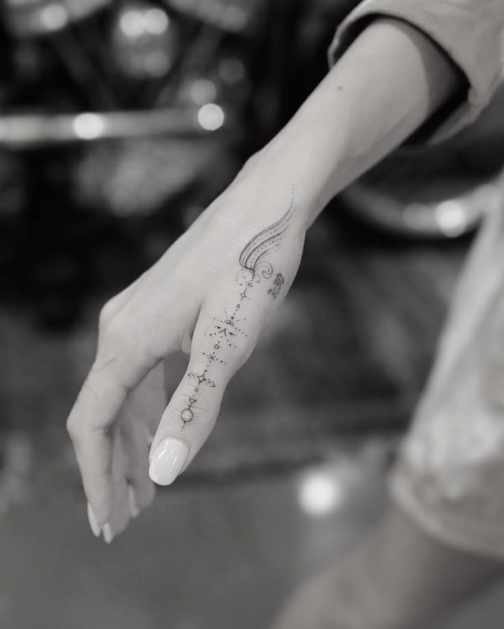 «Работы с тонкими линиями были популярны в течение многих лет, и в последнее время художники стали более охотно делать это и выходить из зоны комфорта больших, натянутых линий», — сказал татуировщик Кит «Bang Bang» Маккарди, который работал с все от Рианны до Кендалл Дженнер и Хейли Болдуин. «Поскольку эти татуировки станут обычным явлением, станет более модным делать более крупные и сложные работы. Поскольку татуировки становятся более приемлемыми, люди будут меньше опасаться татуировать больше своего тела».