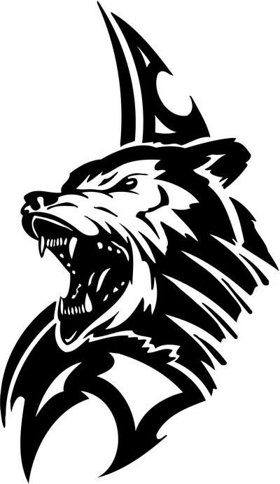 копф брюлленденских волков. – племенной волк татуировки сток-графики, -клипарт, -мультфильмы и -символKopf des brüllenden Wolfes.