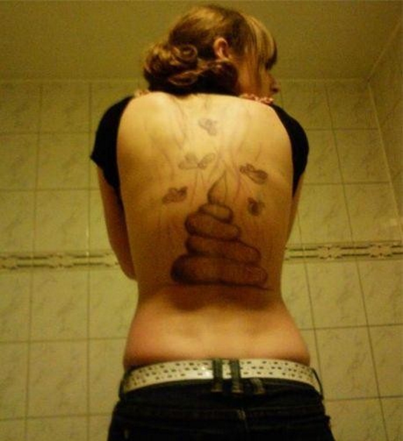 И пусть говорят, что такая татуировка мужская! Не верьте. Я неплохо смотрюсь с изображением Алеши Поповича на пояснице . Пусть татуировка не цветная, слегка грубоватая, но она придает контраст. Женственность и мужество – это смотрится красиво. По крайней мере, моим молодым людям очень нравилось. Сразу оговорюсь, я не брутальная девушка-пацанка. Я нормальная девочка, которая любит каблуки и платья.