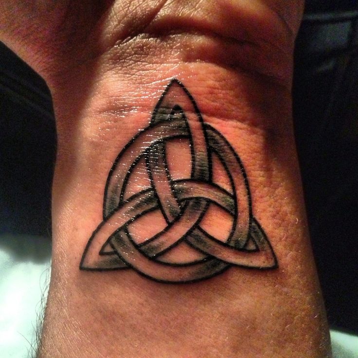 Татуировка на запястье Triquetra часто является религиозной татуировкой и может символизировать христианство, буддизм, индуизм, викканство или любую языческую религию.
