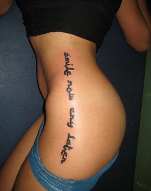 «Сидя на ребро» — замечательная цитата, выражающая простую мысль. Скоропись делает эти три слова восхитительными, сладкими и девчачьими. Вытатуированный прямо на коже, он, безусловно, вдохновляет религиозных женщин.