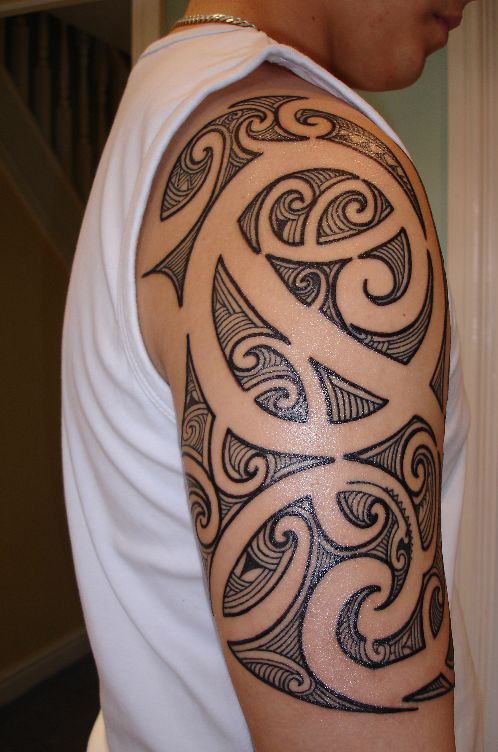 Наиболее эффектно орнамент выглядит в том случае, когда нанесен на все плечо.