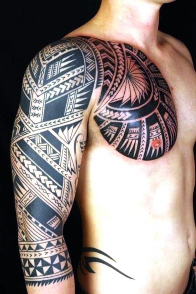 Это, вероятно, самый популярный стиль племенных татуировок. У самоанцев есть набор дизайнов, предназначенных для обоих полов. Мужские рисунки обычно наносятся в нижней части тела, чтобы символизировать защиту от диких животных и моря. Как правило, они обширны и менее замысловаты, чем женские рисунки.