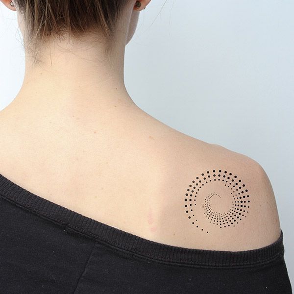 Что делает его интересным, так это то, что круги имеют градиент и не являются полностью сплошными. Есть и третий тип пунктирного круга, который в целом делает вид татуировки очень эстетичным.
