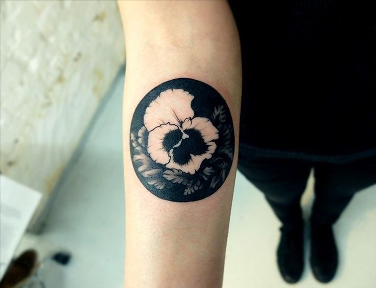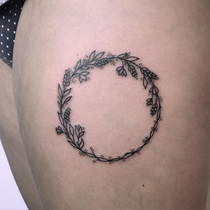 Эта красивая татуировка включала лепестки цветов вместе с кругом в виде веточек цветов. Владелец выбрал черную татуировку, но вы также можете добавить несколько цветов, если хотите, чтобы ваша татуировка была более заметной и живой.