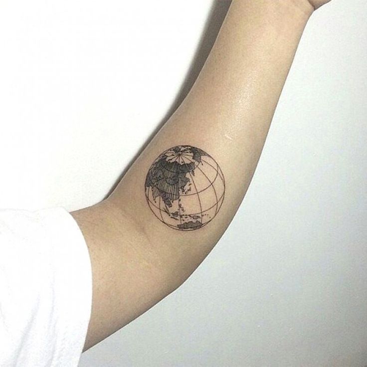 В этой татуировке владелец изобразил элемент земли с горами и деревьями. Остальные планеты видны на небе, вращаясь по круговой орбите. Понятно, что человек интересуется космосом и уважает его гигантскую природу.