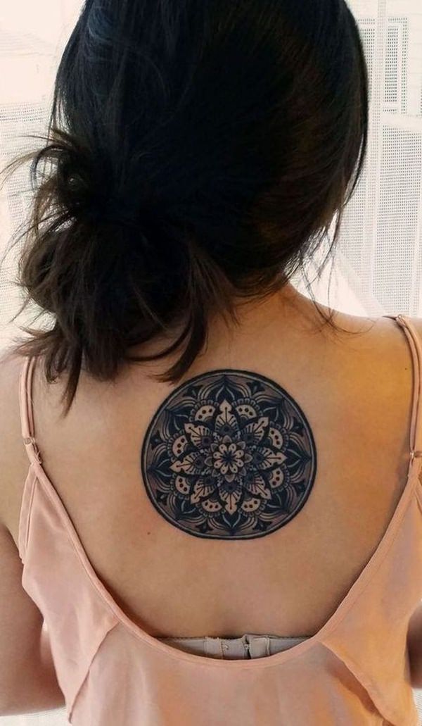 У владельца есть несколько круглых татуировок с очень замысловатыми узорами на спине. Круги впоследствии становятся меньше по мере продвижения вниз по позвоночнику. Спина — одно из лучших мест для таких татуировок, так как там много холста для работы, и они очень хорошо тянутся, так как спина обычно закрыта и большую часть времени не подвергается воздействию солнца.