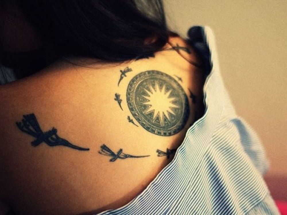 Часто у девушек можно увидеть рисунок Солнца и Луны, что говорит о верной любви и счастливом союзе.