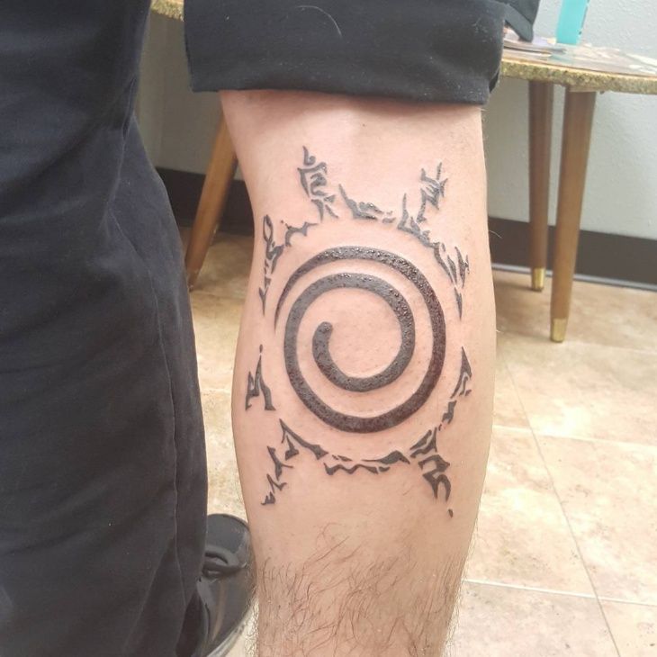 Спирали — один из самых древних и сложных узоров, встречающихся в природе. Несмотря на то, что они не совсем круглые, они все же выглядят как круги, колеблющиеся наружу или внутрь. У владельца здесь есть круглая спираль в центре и два пловца снаружи, которые, вероятно, создают водоворот. Спирали символизируют человеческую судьбу, которая далеко не однозначна.
