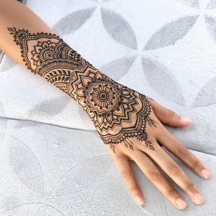 Этот простой, но красивый рисунок хной подойдет для любого случая и обязательно привлечет к вам внимание.