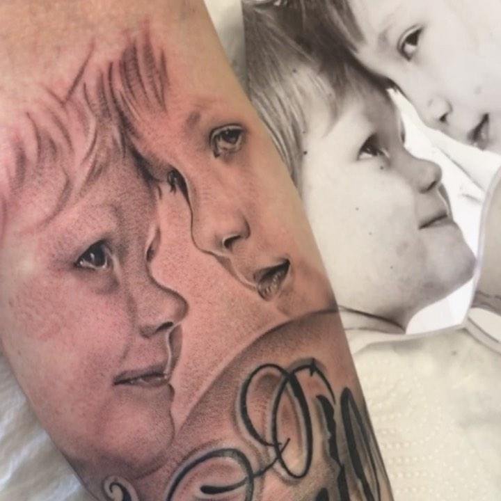 Можно ли чем-то разбавить тату с именами детей? Можно обратить внимание на портретное изображение, для которого характерно нанесение на тело эскиза внешности человека на фотографии. Но мастера, способного на такую работу, найти сложно.