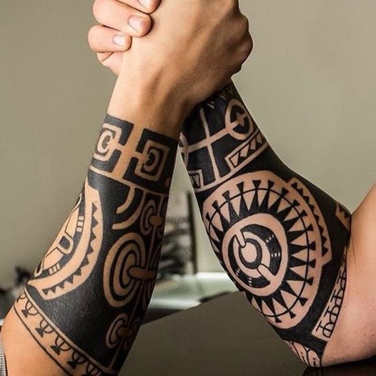 Этнические татуировки черпают вдохновение из племенных искусств из разных уголков мира. На них часто изображают различные символы, существовавшие тысячи лет. Например, заштрихованные треугольники символизируют мощь и силу, а морские черепахи предназначены для защиты. Сегодня большинство племенных татуировок имеют черные и широкие линии, которые следуют мышцам тела.