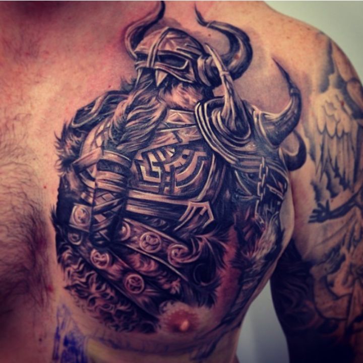 Портрет северного воина символизирует мощь, смелость и готовность защитить себя и близких. Таким изображением украшают своё тело уверенные и целеустремлённые мужчины. Скандинавские руны, которые дополняют рисунок, превращают его в своеобразный оберег.
