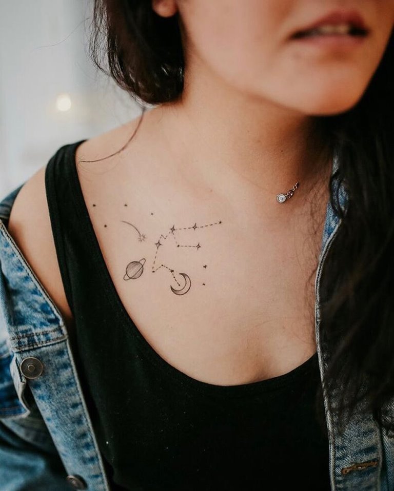 Очень часто девушки выполняют татуировку в виде созвездия. Также популярно выполнение тату в виде двух волн, что характеризует водный символ. Девушки наносят татуировки на шею, запястье или грудь.
