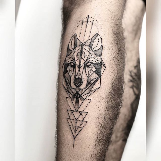 50 Геометрические и блэкворк татуировки волка • Tattoodo