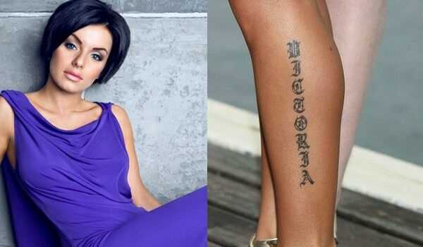 На ноге Волковой красуется надпись «Victoria» — имя дочери (род. 24 сентября 2004)