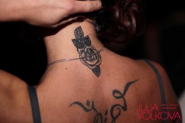 - На шее у певицы есть рисунок с цветком, похожим на розу. Комментариев по поводу этого изображения звезда сцены не давала. При короткой стрижке татуировка выглядела как хвостик с заколкой в виде цветка.
