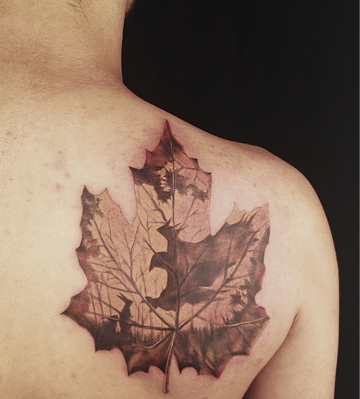 Канадские и японские татуировки с изображением кленового листа и идеи