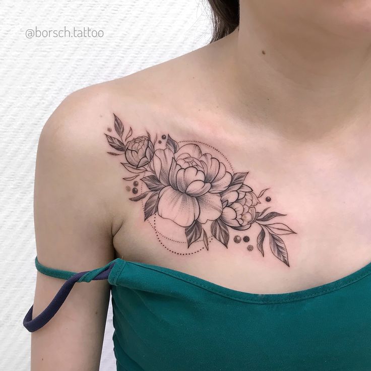 ПионыТатуировки с пионами, сделанные Сэмом Ленгом из Mateo Street Studio.