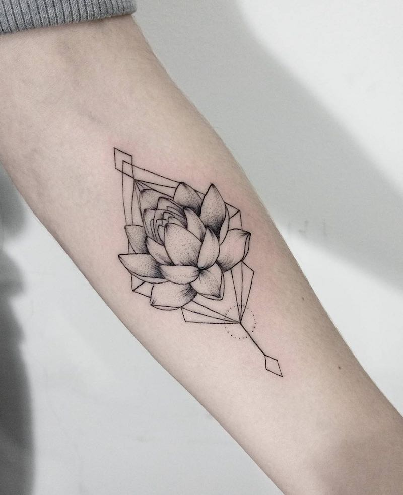 Оно символизирует мужество и лучшие качества настоящего воина. Непорочность и чистоту олицетворяет лотос. Такая особенная татуировка станет идеальной для молоденьких девушек.