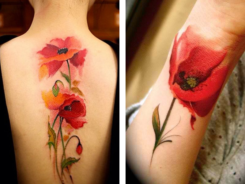 Женские тату с растениями могут быть и скромными. Скажем, если речь идет про полевые цветы. В них нет той строгости и особой красоты как, скажем, у розы. Они простые, нежные и милые. Нередко девушки выбирают в качестве такой татуировки – клевер, одуванчик, ирис, ромашку или же мак. Каждая такая татуировка будет красиво выглядеть и иметь свой особый смысл.