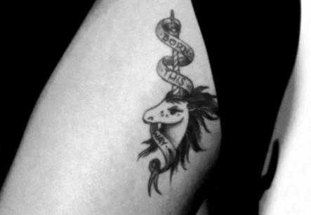 Леди Гага решила увековечить память о своем легендарном альбоме «Born This Way» с помощью татуировки единорога, обернутого лентой с его названием. Тем самым, она задала тренд татуировок единорога. Прочие татушки голливудской звезды – мышка, сердце, рука, цветы и надписи.
