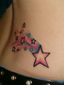 Падающие звезды в татуировке, как и в жизни, символизируют исполнение желания, надежду, веру в лучшее. Для усиления эффекта падения, обычно используют множество мелких звездочек вокруг, тянущихся шлейфом.