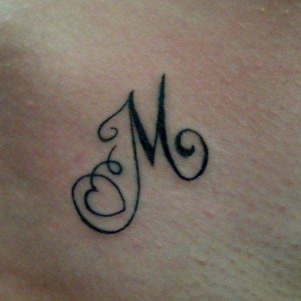 2. Simple M Initial Tattoo: